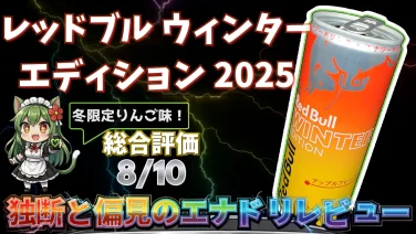 冬限定のレッドブル ウィンターエディション(アップル)を独断と偏見のレビュー。甘さ+爽やかな酸味で飲みやすく、オリジナルの苦みも軽減。無果汁でも香りは良好。味・後味・成分・缶デザイン・おすすめ場面までまとめました。